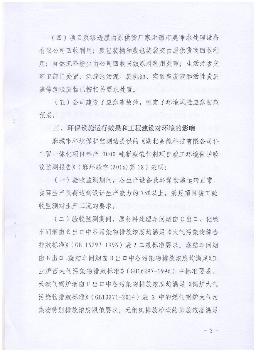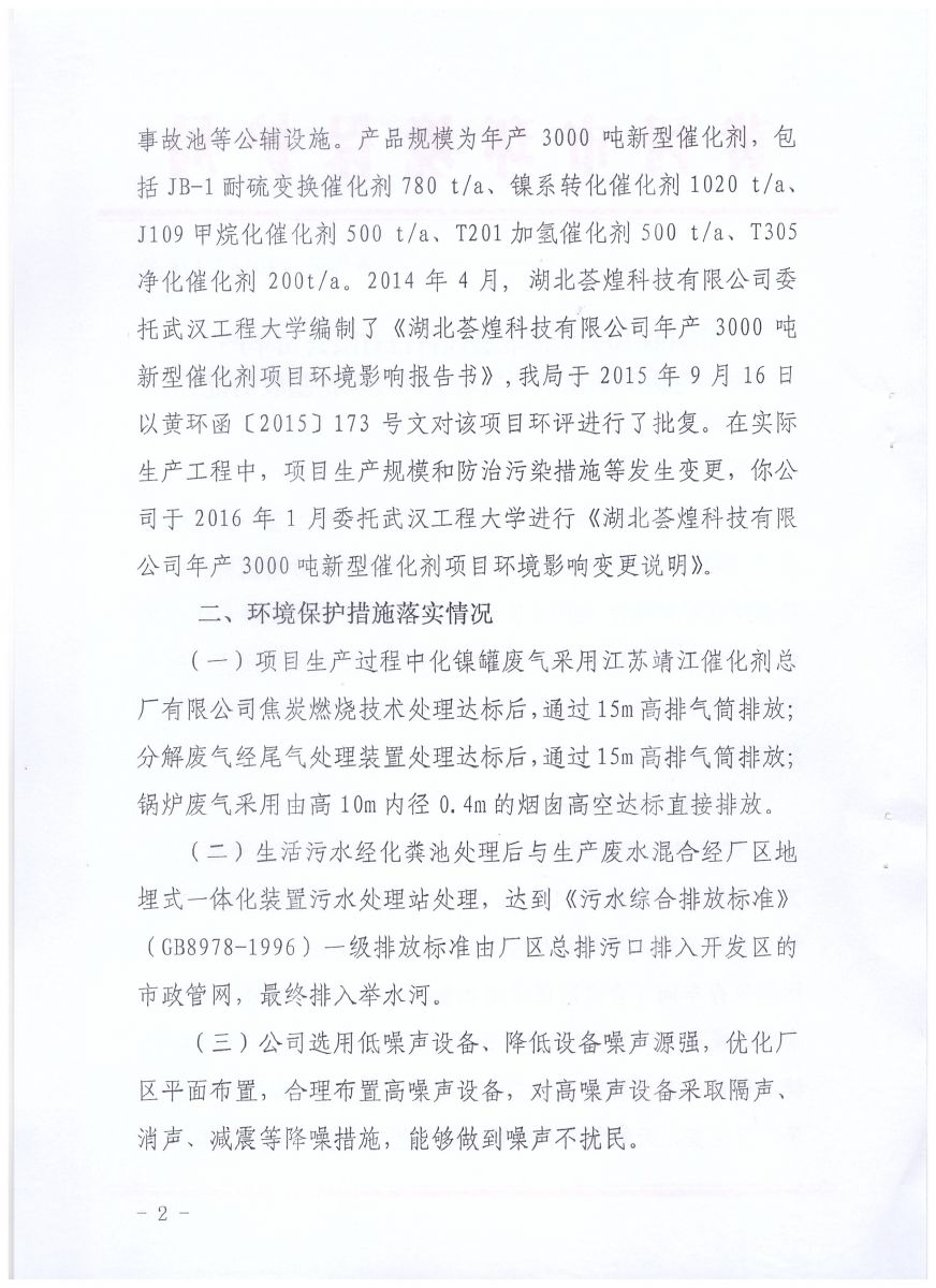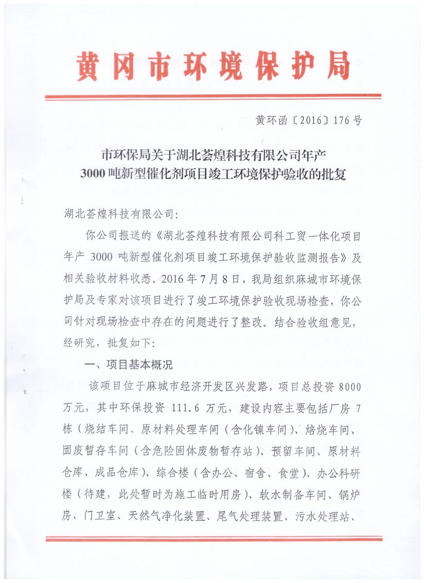 市環(huán)保局對(duì)湖北薈煌科技有限公司項(xiàng)目竣工環(huán)境保護(hù)驗(yàn)收批復(fù)